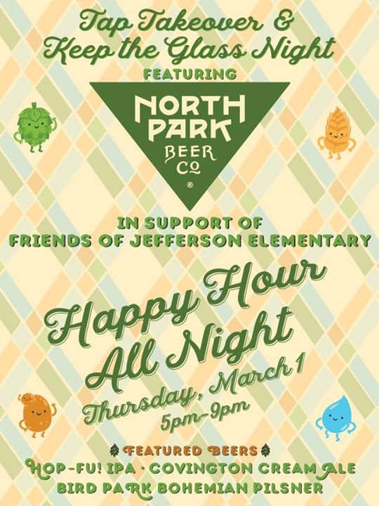 Bonus: this a “tap-takeover” by North Park Beer Co., so you can enjoy some delicious hyper-local brews from a Jefferson parent-owned brewery!