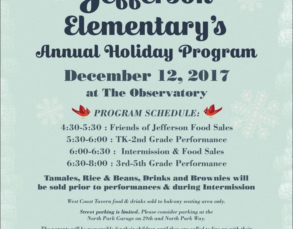 Here’s all the information you need about the Holiday Program. Rehearsals will be held during the school day on Tuesday 12/12. You should have received a […]