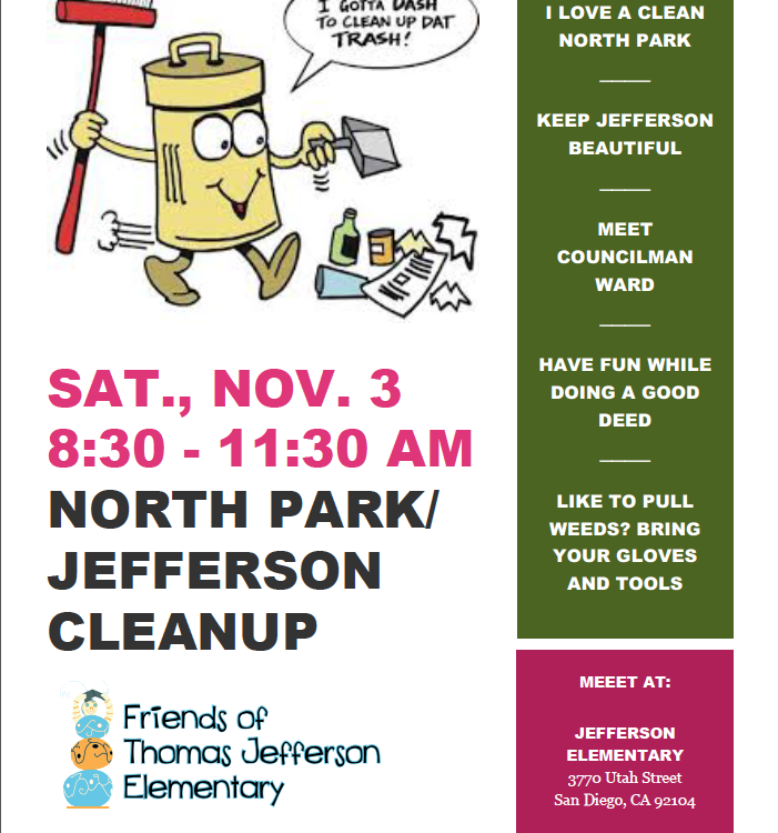 North Park/Jefferson Cleanup Saturday 11/3 Meet at the Joint-Use Field at 8:30 Coffee and Snacks Provided Meet Your City Council Rep After Halloween, it can […]