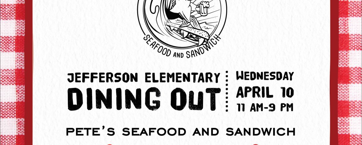 April 8, 2019Come by Pete’s Seafood and Sandwich (30th and Upas) anytime during business hours (11:00 AM to 9:00 PM) on Wednesday 4/10 and mention Jefferson Elementary. A portion of your tab will go to Friends of Jefferson to support programs like gardening, art, after-school clubs and music in the classroom!