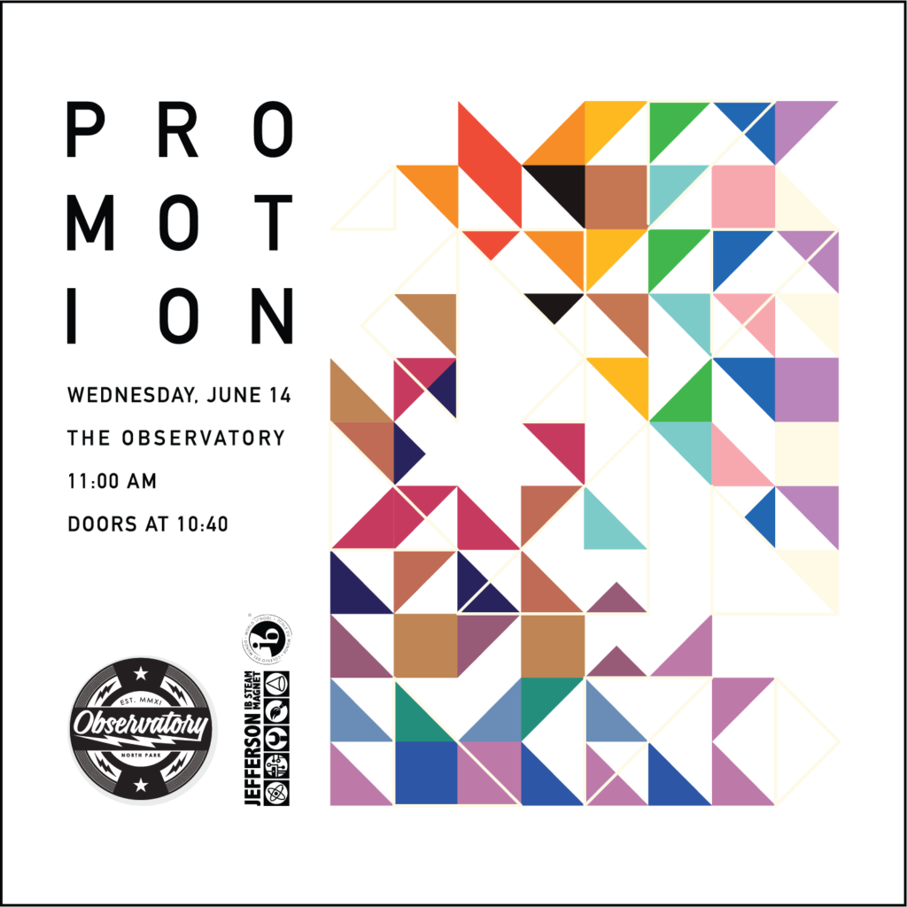 Promotion! Wednesday, June 14th at the Observatory! Doors open at 10:40am.