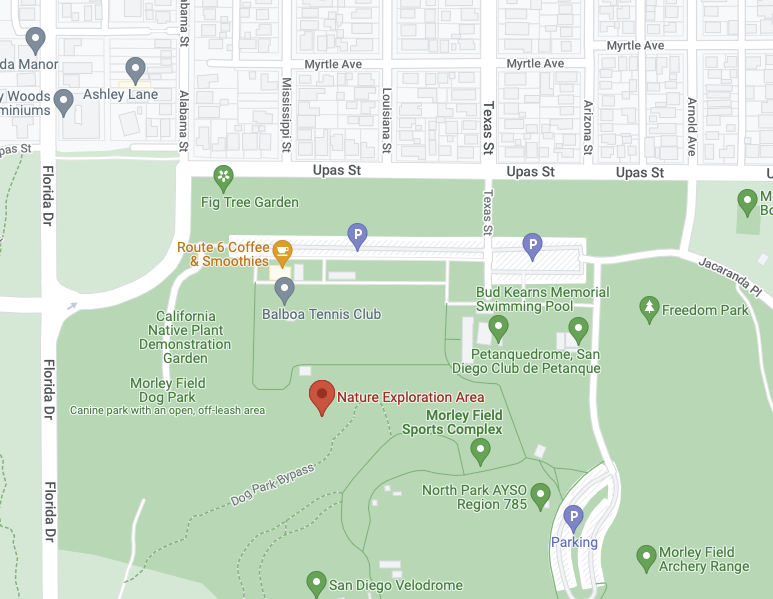 Nature Exploration Area in Morley Field. Directly South of the Balboa Park Tennis Club.