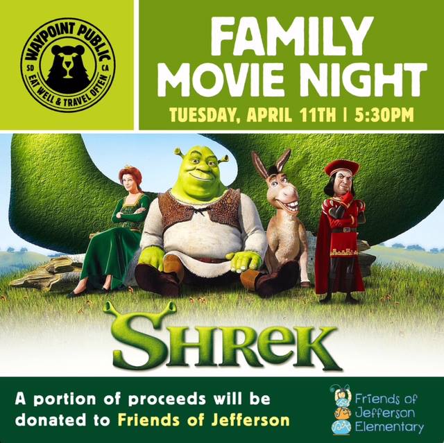 This month’s feature is Shrek. The show starts at 5:30, admission is free, and a portion of the proceeds goes to Friends of Jefferson to support educational and enrichment programs at North Park’s neighborhood public elementary school.