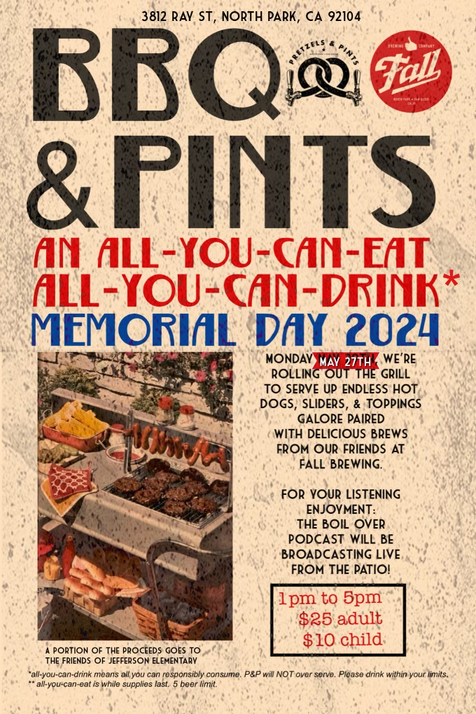 Meet up at Pretzels & Pints on Memorial Day for all you can eat hot dogs, sliders and brews from Fall Brewing.