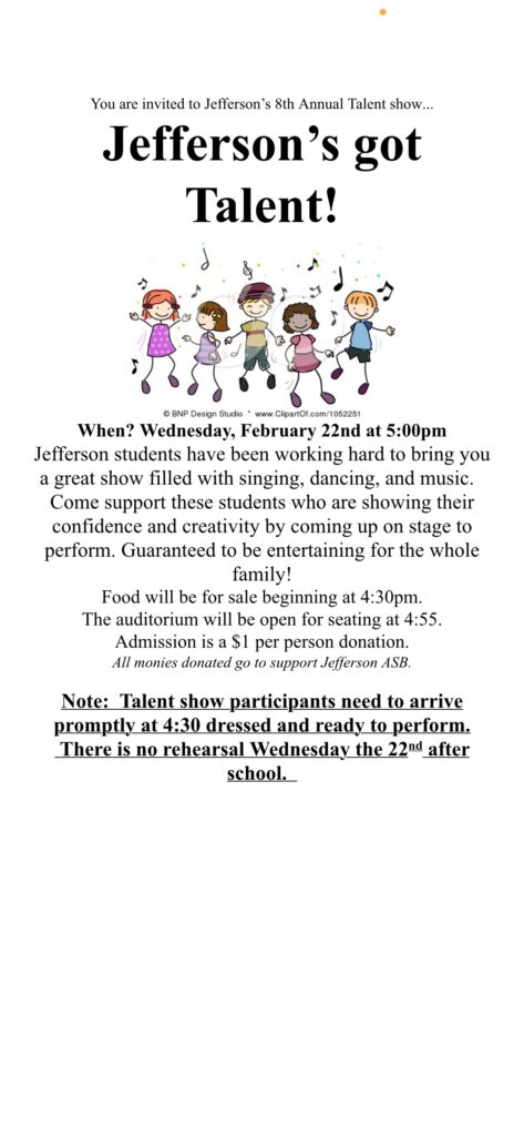GUESTS: Food will be available for sale beginning at 4:30pm. The auditorium will open for seating at 4:55. Admission is a $1 per person donation (supporting ASB).