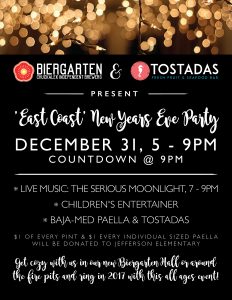 April 5, 2017What are you doing for New Year’s Eve? How about a kid-friendly celebration at ChuckAlek Biergarten that is also a fundraiser for Friends of Jefferson?!